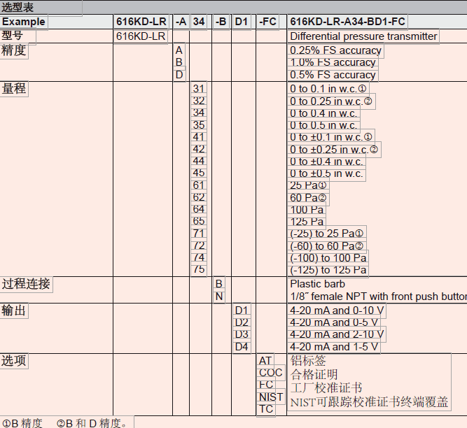 技術(shù)規(guī)格: 服務(wù):空氣和不燃,兼容的氣體。 濕材料:請(qǐng)咨詢工廠。 準(zhǔn)確性: ±0.25% FS for ±0.4˝ (100 Pa)and ±0.5˝ (125 Pa), ±0.5% FS for ±0.25˝(60 Pa), and ±1% FS for ±0.1˝ (25 Pa).。 穩(wěn)定性 ±1% / year FSO.. 溫度范圍:0 - 140°F(-17.8 到60°C)。 壓力極限: 1 psi max。、操作; 10 psi破裂。 電源要求:10到35 VDC(2線),17到36 VDC,或隔離21.6到33 VAC(3線) 輸出信號(hào):4到20 mA(2線),0到5 VDC,0到10 VDC(3線)。 響應(yīng)時(shí)間:2.5 Hz采樣率。 零和跨距調(diào)整:按按鈕。 回路電阻:電流輸出:0到1250Ω最大;電壓輸出:分鐘1 kΩ負(fù)載電阻。 當(dāng)前消費(fèi):40 mA max。 電氣連接:3線可拆卸的歐洲風(fēng)格終端,16 - 26 AWG。 過程連接: 倒塔接頭、雙大小適合˝1/8 & 1/8˝(3毫米和5毫米)ID橡膠或塑料管材,或1/4˝內(nèi)螺紋。 外殼評(píng)級(jí):NEMA1(IP20)。安裝方向:垂直于壓力連接指向下方。 重量:1.8盎司(51克)。 機(jī)構(gòu)批準(zhǔn):CE。